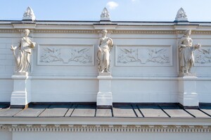The sculptures were created by Josef Schönfeld and Johann Eduard Tomola. Although the sculptures have been repaired several times over the last few decades, they were in very poor, in some cases even critical, condition. The condition of the original stone did not make it possible to return the sculptures to their original places on the exterior even after repair. Therefore, copies of all the sculptures were made and placed on the parapets in November 2014.