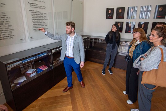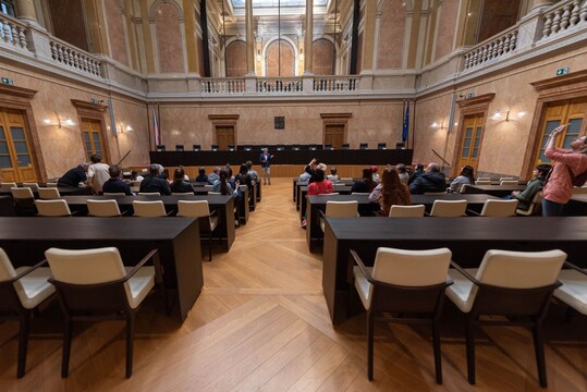 Due to the great interest in tours of the building, the Constitutional Court has almost tripled the number of tours this year. Almost two hundred visitors were thus able to see the Assembly Hall, which is now used for pronouncing the plenary judgments of the Constitutional Court and for holding public hearings. They also saw the Grand Council Room, which was originally used for meetings of the Provincial Executive and is now used, for example, for bilateral meetings between the Constitutional Court and its foreign counterparts. The tour also included the court rooms, where the Senates of the Constitutional Court pronounce the judgments, the Western Gallery, which is functionally separated from the Assembly Hall after its renovation, but remains spatially and visually part of it, and the carriage entrance by which the deputies entered the building originally.